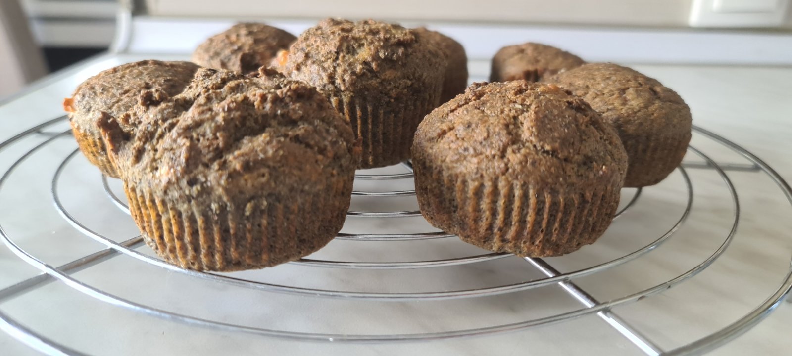Sve sastojke staviti u posudu i umutiti. Izliti smesu u kalup za mafine i pecite na 180 stepeni oko 30 minuta.