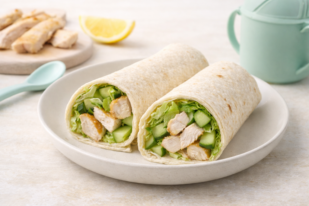 - Stavite ¼ kuvanih pilećih traka na tortilju i urolajte je. Isecite na pola i poslužite. Preostale 3 porcije pilećih traka zamrznite za druge dane.